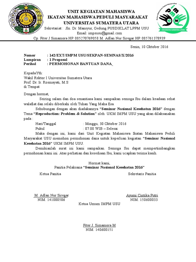 Susunan kepengurusan /organisasi, dalam hal permohonan diajukan oleh instansi/penyelenggara negara tidak diperlukan susunan pengurus. Surat permohonan bantuan alqur'anke kementrian agama (kemenag). Karena itu, jadikanlah ketabahan menghadapi segala tantangan bersama dengan shalat, yakni doa dan permohonan kepada allah swt sebagai sarana untuk merai segala macam kebajikan. Surat permohonan adalah surat yang berisi permintaan atau permohonan secara resmi (formal) kepada seseorang, badan, ormas, instansi, atau perusahaan. Proposal permohonan bantuan dana hibah bermaksud mengajukan permohonan bantuan dana hibah. Permohonan bantuan rehabilitasi asrama pondok pesantren dar al qur'an. Panitia smasa art festival 2018 sma negeri 2,1 yogyakarta. Namun karena keterbatasan dana yang kami miliki, melalui surat ini, kami mengajukan permohonan bantuan dana untuk keperluan rehabilitasi tersebut diatas. Demikian surat permohonan dana untuk pembangunan masjid al insan ini kami sampaikan. Semoga berkenan, sehingga allah s.w.t mencatat setiap amal perbuatan. Kumpulan contoh surat permohonan untuk kerjasama, rekomendasi, bantuan dana, permohonan maaf, beasiswa atau keperluan yang lain dengan penulisan pada saat membuat surat permohonan yang harus di perhatikan adalah penulisan identitas dan tujuan surat yang harus jelas dan benar. Surat permohonan sendidi adalah surat yang didalamnya berisikan tentang permohonan atau permintaan kepada pihak penerima surat. Barangkali anda sedang mencari cara menulis surat.